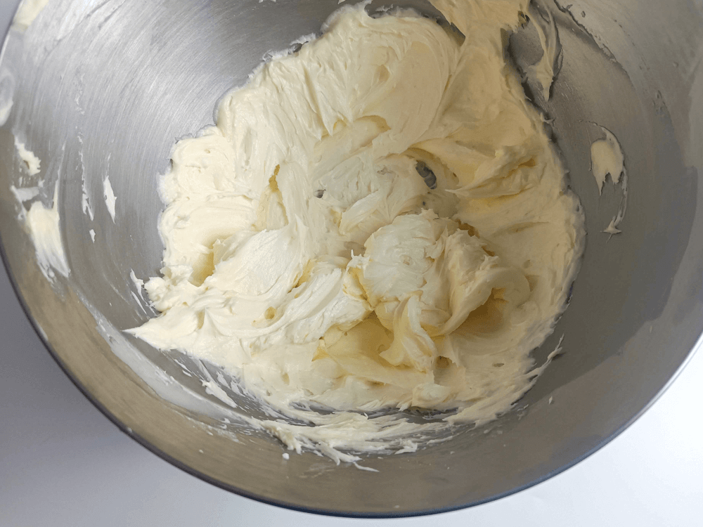4. Miękkie masło utrzyj z cukrem pudrem na jasną i puszystą masę.